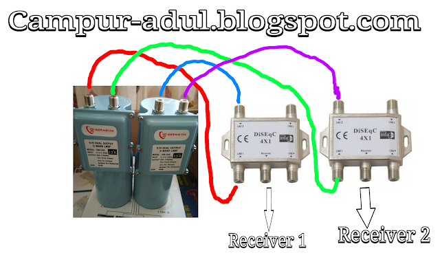 Apabila Anda membeli satu paket LNB dual output biasanya sudah bersamaan dengan kabelnya jadi tinggal Anda rangkai saja seperti gambar yang saya buatkan diatas tersebut