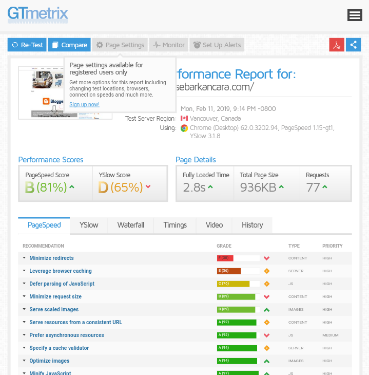 Selain itu ada situs pihak ketiga yang bisa kamu pergunakan untuk mengetahui kecepatan loading website anda itu situs gtmetrix.com, dengan menggunakan situs ini anda dapat uji kecepatan situs anda dan juga menganalisis situs Anda yang membuat loading menjadi lambat atau lemot, situs ini akan menjabarkan secara mendetail tentang situs-situs anda, sehingga kita bisa mengetahui masalah yang harus kita Perbaiki pada situs kita sendiri, Selain itu situs GT Matrix ini juga bisa memberikan solusi untuk perbaikan blog atau website anda, untuk cara penggunaannya silahkan anda hanya tinggal mengunjungi situs resminya secara langsung di GTmatrix.com kemudian masukkan url halaman blog Anda kemudian klik analisis, kemudian Silakan tunggu prosesnya hingga selesai setelah selesai nanti akan muncul nilai dan detail yang membuat situs anda menjadi lemot