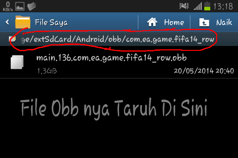 Untuk Contoh Saya menggunakan Game Fifa14, yang memiliki nama folder com.ea.game.fifa14_row#Buat folder kosong bernama " com.ea.game.fifa14_row " Di penyimpanan "sdcard0/android/obb/di sini"