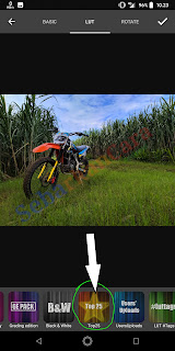 5. Setelah anda mengklik menu lut, kamu nanti akan melihat beberapa menu effect yang tersedia di bagian bawah aplikasi, di sini geser saja menu tersebut sampai Anda menemukan menu effect TOP 25.