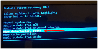 tunggu hingga mode ini hilang - Setelah masuk mode recovery Untuk menggeser gunakan tombol volume up atau volume down pada smartphone anda dan tombol power sebagai tombol oke,