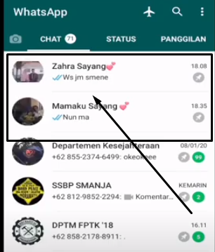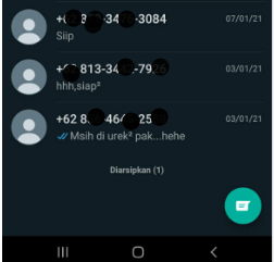 - Saat nomer yang kita sembunyikan mengirim pesan akan muncul di urutan pertama pada pesan whatsapp