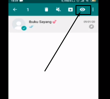 - Pilih nomer/ pesan yang akan di sembunyikan, Tekan agak lama sampai muncul icon di atas pesan tersebut.