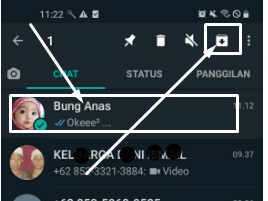 - Tekan nomer tersebut, sampai muncul icon di atas chat